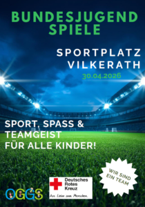 Am Donnerstag, den 30.04.2026, finden unsere Bundesjugendspiele auf dem Sportplatz in Vilkerath statt. Alle Kinder unserer Schule nehmen teil – wir freuen uns auf einen sportlichen Tag voller Teamgeist, Bewegung und Spaß.