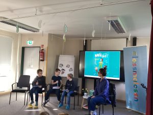 Unterstützt von der Organisation #lassmalesen der lit.kid.COLOGNE arbeiteten die Kinder seit den Sommerferien in zwei Workshops und einer Generalprobe an allem, was zu einer gelungenen Lesung dazu gehört – von Dekoration und Raumgestaltung über Interviewfragen bis hin zu lustigen „Witzgurken“ passend zum Buch.